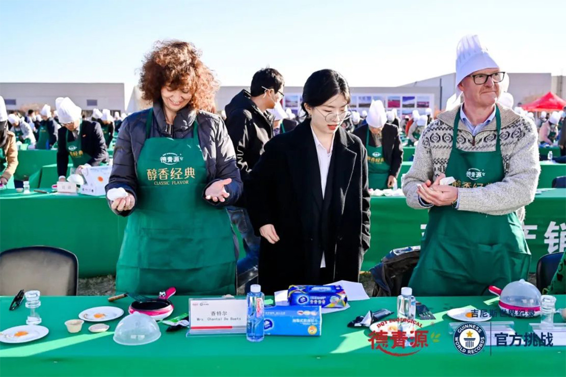 本次活動(dòng)經(jīng)吉尼斯官方確認(rèn),最終打破了“最多人同時(shí)煎蛋”(262人)的吉尼斯世界紀(jì)錄。與此同時(shí),本次挑戰(zhàn)吉尼斯活動(dòng)的主角——德青源“醇香經(jīng)典”無抗鮮雞蛋,更是引來了上海合作組織、比利時(shí)、土庫曼斯坦、薩摩亞、伊朗的駐華使節(jié)和夫人蒞臨現(xiàn)場(chǎng),共同為挑戰(zhàn)吉尼斯助陣。