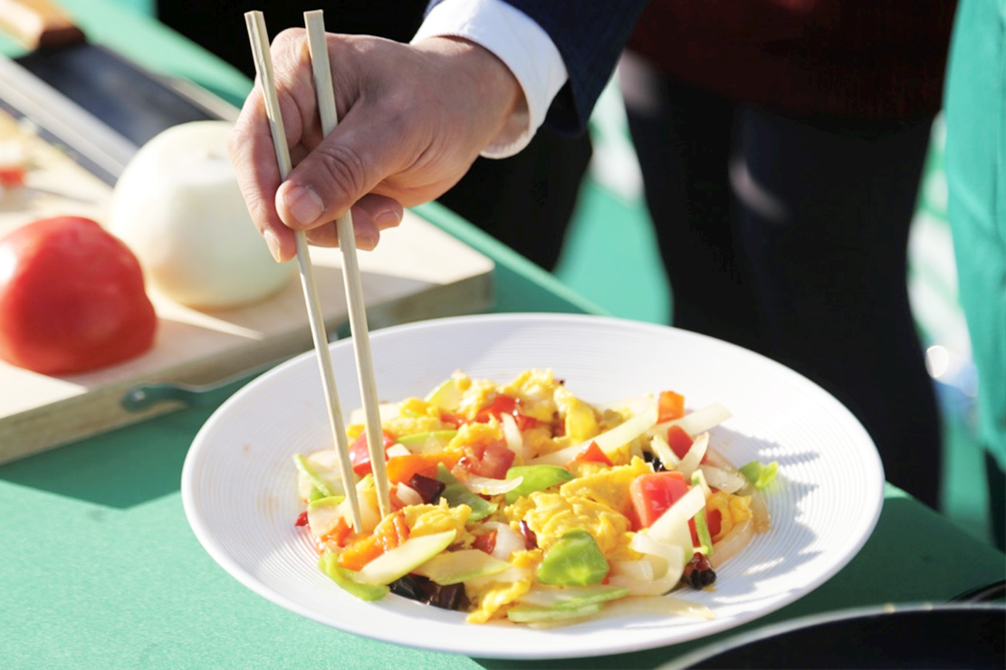 與其一同出席活動(dòng)的副秘書長夫人穆尼拉女士(Mrs. Jononova Munira)在雞蛋煎制完成的第一時(shí)間就開始品嘗起來,“我是一個(gè)對(duì)腥味很敏感的人,但這顆雞蛋剛下鍋就有一股令人食欲滿滿的香氣,所以我才迫不及待地想嘗一嘗,果然不僅沒有一般雞蛋的腥味,口感還很軟糯蓬松,這就是我想象中的好雞蛋該有的味道。”